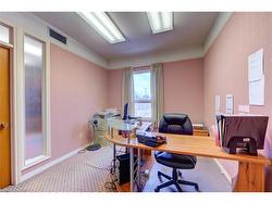 Beautifully built and designed 2 storey office building, with ample parking, in Brantford's busy downtown business district close to all amenities. Another one of those tremendous opportunities to own some of Brantford's most sought after real estate. This property is being offered for the first time in over 50 years. Situated on a huge 49.5' x 100' lot. The large office building immediately beside, at 73 Chatham St, is also for sale. The subject property at 75 Chatham Street has a total square footage of 2944 sq ft. and boasts 5 spacious offices plus reception area, waiting area, kitchenette and 2 pc washroom on the main floor. The 2nd floor has 5 spacious offices, a beautiful rear library with French doors boasting a tremendous amount of built-in wrap around oak shelving, a 2pc washroom and 2nd kitchenette. The basement has room for a great amount of storage and in one section you'll find the valuable rolling file storage system, to stay. New Furnace, new A/C. Roof video inspected 2025. A wonderful opportunity!