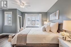 There's a moment when you walk in & instantly feel it - the space, the light, the vibe. It's modern but warm, smart but simple, & finally... it just fits! Welcome to 4148 Galileo Common, a Freehold townhome tucked into Burlington's amazing Longmoor community - where peaceful living meets total convenience. All 1716 sqft of home is perfection... & the location...I can't even... quick access to the GO Station, QEW, shops, trails, gyms, & the city's best cafés. Step through the front door & you're greeted with upgraded lighting, tiled flooring, and rich wood stairs that lead you into a main floor designed for real life - entertaining, working, unwinding, or everything in between. The kitchen is pure function-meets-style with rich cabinetry, stone counters, stainless-steel appliances, & a breakfast bar made for coffee catch-ups & casual hangs. The living room flows effortlessly from here - hardwood underfoot, gas fireplace glowing, & sliding doors opening onto your private deck. BBQ nights, wine with friends, or slow Sunday mornings - it's all yours. Upstairs, wide-plank luxury vinyl floors lead to a spacious primary suite with dual closets & a private 4-pc ensuite. Another generous bedroom plus a full bath means room to grow, host, or create. The lower level? Your secret weapon - with high ceilings, natural light, a custom barn door, & walk-out to a private patio. Whether it's your office, 3rd bedroom, workout zone, or Netflix bunker - you get to decide. Extras you'll love: smooth ceilings, large bedrooms with ample closet space, upgraded light fixtures, inside garage entry with workbench & storage, & thoughtful upgrades throughout. Steps to parks, trails, shops, gyms, and top-rated schools. Minutes to the Vibrant Downtown Burlington Waterfront where there is always something happening! Easy commuter access with GO Station & QEW nearby! Move-in ready. Effortless lifestyle. Endless potential.Don't overthink it - homes like this are the ones people regret not acting on. (id:27)