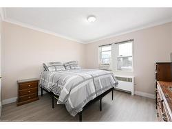 Don’t wait and miss your opportunity to call this unit HOME! Welcome to this bright and spacious, 855sqft, 2 bedroom corner unit with lots of windows and lots of natural light, in a fantastic and highly desirable central Burlington location, close to shops, dining, parks, trails, downtown Burlington, hospital, highways, rec/community centre, library, public transit, and endless other great amenities. This unit features a kitchen with white cabinetry, double sink, backsplash, lots of cabinet and countertop space including the mobile island/cupboard, and a window, a large living room with a beautiful wood feature wall and large windows, a separate dining room off of the kitchen, 2 spacious bedrooms including the primary bedroom with crown moulding, an updated 4-piece bathroom with new vanity, porcelain sink, plumbing fixtures, lighting, tub/shower wall tile, and a window, quality luxury vinyl floors and 5.5” baseboards throughout, and fresh paint throughout. The complex conveniently backs on to Centennial Walking/Biking Trail. The building is very quiet and well maintained. The building amenities also include a storage locker, visitor parking, and onsite laundry room. The unit comes with 1 parking space, with the potential to rent a 2nd spot if needed. The low monthly maintenance fee includes PROPERTY TAX, heat, water, parking, locker, building insurance, exterior maintenance, and visitor parking. No pets (unless service animal), and no rentals/leasing. Welcome Home!