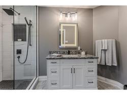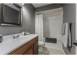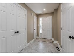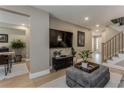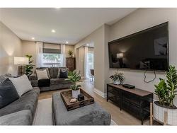 Welcome to this spacious executive townhome offering over 2,100sf of modern, move-in ready living space in the sought-after Tyandaga Highlands community. Perfectly situated with quick access to major highways, parks, schools, shopping, and everyday amenities, this home combines convenience, comfort, and style—making it an ideal choice for new families looking to settle in Burlington. The front exterior greets you with perennial gardens, a charming covered porch, and an attached garage with inside entry. Step inside to find a welcoming foyer with sleek modern tile leading into a functional main floor layout. Newer pot lights (2021) and wide-plank hardwood floors flow throughout, complementing the bright and open living and dining areas. The upgraded kitchen is a true highlight with quartz countertops, custom cabinetry, stainless steel appliances, and a stylish tile backsplash. The dining room, open to the living room, provides a seamless flow for family gatherings and features a walkout to the rear yard. A modern 2-piece powder room and upgraded wood staircase with iron spindles (2021) complete this level. Upstairs, the expansive primary retreat serves as a peaceful escape with a large walk-in closet and a renovated spa-like ensuite (2021) featuring an oversized glass walk-in shower and LED mirror. An additional generously sized bedroom and a 4-piece main bathroom provide plenty of space for children, guests, or a home office. The fully finished lower level offers even more living space with newlyupgraded carpet (2025), a spacious recreation room, laundry, and ample storage. Whether you need a playroom, media lounge, or private office, this versatile level adapts to your family’s lifestyle. The rear yard is designed for easy maintenance and everyday enjoyment with patio stones, privacy walls, and shared green space. Every detail has been thoughtfully updated and cared for, offering a turnkey lifestyle in one of Burlington’s most desirable neighbourhoods.