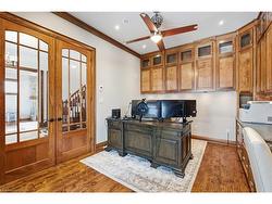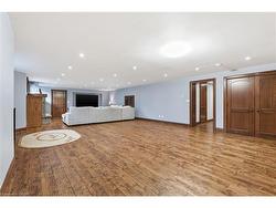 Montana lodge - inspired luxury, with 6688 sq ft of total living space, in one of South Burlington’s most coveted neighbourhoods, nestled in the desirable Tuck School District. This exceptional 4+1 bedroom, 5-bath home blends timeless elegance with modern comfort, featuring generous principal rooms, high-end finishes, and custom millwork throughout.The main level offers 10 ft ceilings, a grand great room with coffered ceiling and fireplace, formal dining room, living room, breakfast nook, private office, and a gourmet chef’s kitchen with premium appliances. A spacious mudroom with garage and side-entrance access completes this level.Upstairs, the primary retreat includes a fireplace, spa-inspired ensuite, walk-in closet, and private balcony. Three additional bedrooms with ensuite access and a second-floor laundry room provide ideal family convenience.The lower level features a separate entrance, a full in-law suite, a stylish rec room with fireplace, sauna, and a wet bar/additional kitchen—perfect for extended family or elevated entertaining.Situated on an impressive 75' x 150' south-exposed, professionally landscaped lot, and just minutes to parks, the lake, and Appleby GO, this home delivers the very best of Burlington luxury living.