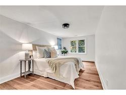 Nestled on one of South Aldershot’s most serene, tree-lined streets—directly across from the Burlington Golf & Country Club—this fully reimagined luxury residence offers over 4,500 sq.ft. of refined living on an expansive 11,500+ sq.ft. lot. Every detail has been thoughtfully curated, showcasing exquisite craftsmanship, rich hardwood floors, and an abundance of natural light that fills the home with warmth and sophistication. The gourmet chef’s dream kitchen serves as the heart of the home, featuring professional-grade appliances, quartz countertops, custom cabinetry, and a grand island overlooking the elegant family room with its 8-ft electric fireplace, large windows, and patio doors opening to the sun-soaked deck. The primary suite is a haven of serenity, complete with a custom walk-in closet and spa-inspired ensuite boasting heated floors, a freestanding soaking tub, glass shower, and dual vanities. Upstairs offers a private living area with a kitchenette, lounge, and ensuite bedroom—perfect for extended family or guests. The finished basement provides yet another private living space with two additional bedrooms, ideal for multi-generational living. Step outside to your private backyard oasis, featuring a new pool liner, sprawling 1,100 sq.ft. deck, lush professional landscaping, and mature trees offering total privacy. Enhanced with CCTV surveillance, new plumbing and electrical, heated floors in all bathrooms, and parking for 11 vehicles. Ideally located minutes from the lake, LaSalle Park, top-rated schools, shops, and major highways.