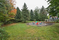 Tucked away in the scenic hamlet of Alton, Ontario, just steps from the area's best hiking trails, world-class golf, local artisan shops & fine dining, this charming modern rustic log home is a rare opportunity to own a slice of serenity w/o compromising on convenience. Offering a perfect blend of timeless character & modern comforts, this 3+1 bed, 2 bath home sits on a beautifully private 1-acre lot. As you approach the house, you're immediately struck by the inviting water feature & the warmth of the log/timber construction, which blends seamlessly into the natural surroundings & driveshed w/power ideal for hobbyists, extra storage, or a workshop. Step inside & be greeted by open concept living/dining/kitchen area boasting exposed log beams, wide-plank hdwd floors anchored by a massive wood-burning fireplace crafted from reclaimed brick, spacious kitchen w/breakfast bar, an abundance of counter space & open to the dining area, perfect for hosting or enjoying a quiet night in. Versatile main floor bedroom offers flexible usage as a home office, formal dining room, or den. The great rm is a stunning space featuring soaring ceilings, propane fireplace, oversized windows & a w/o to the back deck, filled with sunshine by day & warm glow by night. Updated 3-pc bath w/walk-in shower, stylish finishes & convenient main flr laundry. Upstairs, you'll find 2 generously sized bedrooms offering ample closet space, warm wood details, peaceful treetop views & updated 4-pc bath w/modern fixtures & a classic clawfoot tub. Primary bedroom is enhanced by a bonus loft space that overlooks the great room below. Use it as private reading retreat, yoga/workout area. The lower-level rec room is perfect for hosting gatherings w/bar, w/o to backyard, & add'l bedroom. In the backyard, soak your cares away in the hot tub, gather w/family & friends around the massive firepit, or enjoy outdoor dining and entertaining under the covered gazebo. Bonus bunkie & pizza oven completes this backyard.