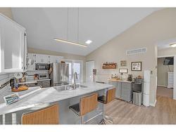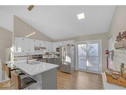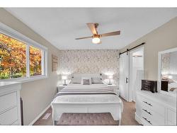 Welcome to 54 Morgan Dr. This charming, raised ranch is ready for its new owners. Upon entry, you will appreciate the inviting atmosphere of this well-maintained 2 + 2-bedroom residence, ideal for first-time home buyers or those looking to downsize. The property boasts a contemporary open-concept layout with cathedral ceilings and a cozy electric fireplace that enhances the home's warm ambiance. The kitchen features stainless steel appliances and recently updated patio doors leading to the side deck, which includes a natural gas BBQ hookup. The main level offers two bedrooms overlooking the serene, forested area at the back of the home, as well as a recently renovated, modern four-piece bathroom. The lower level provides additional living space, including a spacious recreation room filled with natural light from large windows. Two generously sized bedrooms and a modern three-piece bathroom with a glass walk-in shower are also located on this level. Outside, the property has been meticulously landscaped, offering a concrete driveway, walkway to the rear, and a large patterned concrete patio featuring a gazebo and hot tub. The private backyard overlooks a wooded area, creating a rare and tranquil setting. Additional amenities include a garden shed for extra storage. Recent updates include new shingles (2017), front windows (2022), a hot tub (2018), fully renovated main bath (2024), washer and dryer (2023).