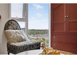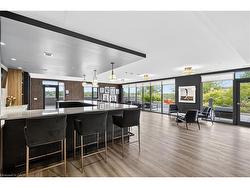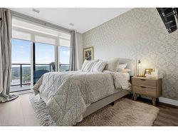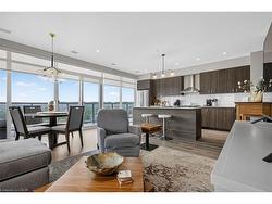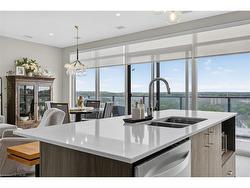 Located in the heart of historic downtown Galt, this beautiful condo is part of thevibrant Gaslight District—a new center for residential, commercial, retail, dining,art, and culture. Here, life, work, and leisure come together to create anunparalleled living experience. This stunning unit has amazing SOUTHWEST exposure with unobstructed views and is bright all day long with stunning sunrises and sunsets! This impressive unit boasts nine-foot smoothceilings, potlites, custom roller shades on remotes, custom mirrors, luxury flooring, and has been recently painted in neutral Benjamin Moore shadesthroughout. The gorgeous open kitchen has modern cabinetry, quartz countertops, atile backsplash, an oversized island with an under-mount sink and chrome hardwareand faucet. A Custom dining room chandelier and pendant lighting were recentlyadded. It is complete with SS appliances. The open-concept design flows to agenerous living and dining area, ideal for entertaining. Floor-to-ceiling windowsand access to a large balcony let natural light flood the space. The primary suiteoffers wall to wall full sized patio doors leading to the balcony, as well as wallto wall closets, and a luxurious four-piece ensuite with dual sinks and a walk-inshower. A second bedroom with floor-to-ceiling windows, a four-piece bath with atub and shower combo and two full closets and in-suite laundry complete thispremium unit. Residents enjoy stunning amenities to include luxurious hotel-stylelobby, secure video-monitoring, a fitness centre and yoga studio, large TV, acatering kitchen, a private dining room, and a cozy library. The lounge opens ontoa spacious outdoor terrace overlooking Gaslight Square, featuring multiple seatingareas, pergolas, fire pits, and a BBQ area for outdoor relaxation. Simply Stunning!