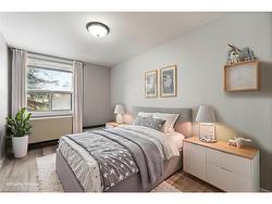 Move-in Ready! This is a term which is often used but seldom delivered. Unit 205-200 Jamieson Pkwy truly delivers! This 973 sq ft, 2-bedroom unit has been completely upgraded! Featuring LVP flooring throughout creating a beautiful, super durable, easy to clean surface on which to display your furnishings. The spacious living room will become the gathering place for conversation or the ideal spot to binge watch your favorite program. When the weather warms, the adjacent covered balcony provides the ideal spot for a morning coffee or evening libation. Here you can enjoy the fresh air and remain protected from intense sun or rain. The bright kitchen has been fully remodeled with additional cabinetry, subway tile backsplash, stainless steel appliances and stone counters. The resident chef can create their culinary classics for family & friends. Two large bedrooms await the new owners; the primary easily accommodates a King size bed while the 2nd bedroom could serve as a guest suite or perhaps a home office. The 4-pc bath has a man-made marble tub surround providing an easy to maintain surface for showers or baths. Off the hallway, laundry and storage are inconspicuously situated behind an attractive barn door providing both convenience & utility. Additional upgrades include new 4-panel doors, new hardware, new casings/trim and even the popcorn ceilings have been replaced with a California textured finish. Last but certainly NOT least, there are TWO (2) parking spaces, a rare commodity in today’s condo market!