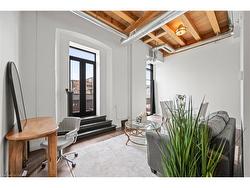 Experience the perfect blend of industrial charm and modern comfort at Riverbank Lofts! This stunning one-bedroom, one-bathroom condo is set in a beautifully repurposed former American Standard factory, transformed into contemporary residences in 2020. Nestled alongside the scenic Speed River and just steps from downtown Hespeler, you’ll enjoy easy access to local shops, trails, and vibrant community amenities. Step inside to soaring 12-foot ceilings, expansive windows that flood the space with natural light, and striking exposed stone walls and reclaimed wood beams that add unique character throughout. The stylish kitchen features quartz countertops, stainless steel appliances, and a spacious island—perfect for entertaining or casual dining. Open the patio doors to your own private balcony with captivating views of downtown. The bedroom offers a generous walk-in closet, providing ample storage. Additional conveniences include in-suite laundry, one dedicated parking space, and access to premium building amenities: a fitness centre, bike storage room, dog washing station, and a private lounge for hosting guests. With quick access to Highway 401, shopping, and public transit, Riverbank Lofts offers an unparalleled lifestyle in a truly distinctive setting. Don’t miss your chance to own a piece of Hespeler’s history—book your private showing today!