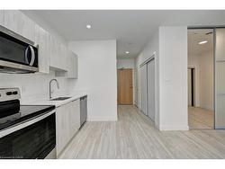 Welcome to this modern 1-bedroom, 1-bathroom condominium-designed in a studio-style layout-with the added convenience of one dedicated parking space, located in a highly desirable area of Cambridge. This well-appointed second-floor unit features a private balcony, perfect for relaxing and enjoying quiet outdoor space. The interior showcases 9-foot ceilings, a solid-core entry door, and a contemporary custom kitchen complete with quartz countertops and builder-selected stainless steel appliances. The stylish 3-piece bathroom offers a clean, modern design, while the unit is finished without carpeting for easy maintenance and a sleek look. For added peace of mind, smoke, carbon monoxide, and heat detectors are installed throughout. Ideally situated at the intersection of Franklin Boulevard and Dundas Street South, this location offers quick access to Highway 401, public transit, shopping plazas, schools, community centres, scenic trails, the Grand River, downtown Cambridge, and the city's historic attractions. Surrounded by diverse dining and lifestyle amenities, this home is an excellent opportunity for first-time buyers, investors, or professionals seeking comfort, convenience, and modern living.