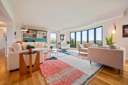 A winding driveway draws you toward The Riverlands, a spectacular top-of-the-line modern estate offering over 7,000 sq ft of total space. Nestled on 3.67 acres with commanding views of the Grand River, this architectural gem underwent an extraordinary full-scale renovation from '20 to '22. Today, it stands as a seamless fusion of timeless design and forward-thinking sustainability, boasting carbon-neutral, net-zero-ready systems. The main level features a stunning chef-inspired kitchen with quartz countertops, custom cabinetry, and an impressive suite of appliances. Sliding doors lead to a stone patio with a fireplace and BBQ, perfectly positioned to enjoy the sights and sounds of one of Ontario's premier fly fishing destinations. The open-concept living and dining area is enhanced by natural light, bespoke walnut built-ins, and sweeping river views. The primary suite is a private retreat, complete with a five-piece ensuite, custom dressing room with integrated laundry, and access to a versatile den or office with a wood-burning fireplace and access to the rooftop terrace. Two more bedrooms offer walk-in closets and share a beautifully updated bath. A curved staircase leads to the lower level featuring a second kitchen with an indoor charcoal grill, a family room with fireplace, a billiards room, a guest suite, a wine room, and a walk-in fridge. Thoughtfully designed to function seamlessly as a multi-generational home, this level offers independent yet connected living spaces ideal for extended family or guests. The showstopping indoor saltwater pool has dedicated HVAC and solar-powered heating, plus a sauna, change room, and adjoining sunroom with walkout to the backyard. Rooftop solar panels, geothermal systems, upgraded electrical, smart home features, and plans for a detached 3-car garage complete this one-of-a-kind package. Just minutes from Belwood Lake and downtown Elora, The Riverlands is a rare blend of modern luxury, natural beauty, and sustainable living.