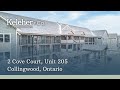 Welcome to Wyldewood Cove, where breathtaking Georgian Bay views and four-season living come together in perfect harmony. This beautifully designed 1-bedroom + den, 2 full bathroom condo offers an exceptional lifestyle in one of Collingwood's waterfront communities. Step inside to a bright, open-concept layout featuring a walkout to the terrace, modern finishes, and a cozy gas fireplace perfect for winter evenings. The kitchen is ideal for entertaining, with stainless steel appliances, a granite breakfast bar that seats four, and ample storage. The primary bedroom includes a 4-piece ensuite, while the den functions perfectly as a home office or second bedroom, with a 3-piece bath conveniently located just across the hall. Your private covered terrace overlooks the year-round heated outdoor pool, with the serene backdrop of Georgian Bay just beyond. From here, it's only steps to the waterfront patio and pergola the perfect place to unwind and watch Collingwood's spectacular sunsets. In the warmer months, enjoy swimming, kayaking, and paddleboarding from the community dock.Additional features include a private storage locker for bikes, skis, or golf clubs, access to a fitness centre, and beautifully maintained grounds with scenic trails close by. Ideally situated between downtown Collingwood and Blue Mountain, you're just minutes from golf courses, ski hills, shops, restaurants, and more. (id:27)