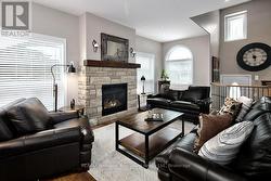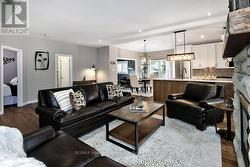 Welcome Home! Step into this stunning, thoughtfully renovated residence that perfectly combines modern comfort with timeless charm. Located in the heart of Georgian Bay and Collingwood's sought-after communities, this home is ideal for those seeking an exceptional lifestyle surrounded by natural beauty and urban convenience. Featuring soaring cathedral ceilings, the open-concept main floor is a welcoming space with gleaming hardwood floors, a cozy gas fireplace, and a newly renovated kitchen with sleek quartz countertops. The flexible layout includes two bedrooms (or one plus a den), offering versatility to suit your needs. The luxurious loft primary suite is a true retreat, boasting its own cathedral ceiling, a spa-like ensuite bathroom with a Jacuzzi tub, a fireplace, and ample space to relax and unwind. The finished basement adds even more value, offering two additional bedrooms, a bathroom, and a family room perfect for guests, teenagers, or a home office. The oversized garage is a dream for hobbyists and families, featuring a wall storage system, newly epoxied floors, and ample space for vehicles, tools, and toys. Outside, your private backyard oasis awaits, complete with a spacious gazebo, double-sided planters with integrated seating, and in-ground sprinklers. Its the perfect space for entertaining, relaxing, or enjoying the fresh air. Whether you are starting a family, looking for room to grow, or dreaming of a forever home, this property offers the perfect setting for any stage of life. Discover the best of Georgian Bay Real Estate and Collingwood Real Estate with this exceptional home. Visit our website for more detailed information. (id:27)