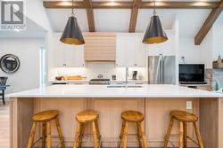 NEW PRICE & STEPS TO SUNSET POINT, GEORGIAN BAY - this custom Vandermeer-designed 5-bedroom home offers over 3,700 sq. ft. of beautifully finished living space, just steps from Georgian Bay and the trails at Sunset Point. Blending timeless craftsmanship with modern comforts, the main floor features soaring 12-ft cathedral ceilings with rustic beams, a chef-inspired kitchen, and a spacious family room with a cozy gas fireplace; perfect for entertaining or quiet evenings in. The main-floor primary suite includes a luxurious 5-piece ensuite, while a versatile upper-level loft with its own fireplace offers the perfect space for a home office or private retreat. The fully finished lower level adds even more functionality with a large rec room, wet bar, gas fireplace, two additional bedrooms, and a full bath; ideal for guests or extended family. Practical touches like a mudroom with garage access add to the home's everyday convenience including potential for in-law suite. Located minutes from Blue Mountain, ski resorts, golf, waterfront parks, and vibrant downtown Collingwood, this property delivers both luxury and lifestyle. A rare opportunity at a compelling price. (id:27)