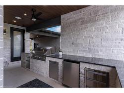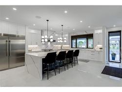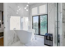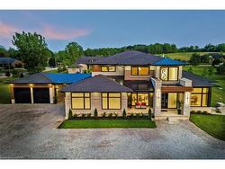 Discover unparalleled luxury in this custom-built modern masterpiece on a sprawling 1.6-acre estate in one of Dundas' most exclusive neighbourhoods. Enjoy the tranquility of a private country retreat just minutes from downtown Dundas and a short drive to Ancaster, Burlington, and McMaster. This stunning home offers over 6,000 sqft of exquisitely designed living space with 4+1 bedrooms and 7 bathrooms. From the striking architecture and custom millwork to the warm ambiance created by designer fixtures, soaring ceilings, 4-foot porcelain tiles, and ¾-inch engineered hardwood, every detail will impress. The dramatic 19-foot great room features floor-to-ceiling black frame windows with automated blinds and a sleek gas fireplace wrapped in 10-foot porcelain slabs. The chef’s kitchen is a showstopper, equipped with top-tier appliances, quartz countertops, a waterfall island, built-in espresso bar, and a hidden walk-in pantry for a clean, streamlined look. The main-floor primary suite offers a spa-like retreat with a five-piece ensuite including heated floors, glass shower, freestanding tub, double vanity, and an oversized walk-in dressing room with custom organizers. Upstairs, three bedrooms each have unique ensuite baths and 9-foot ceilings, ensuring privacy and comfort. The finished lower level expands your living space with a full secondary kitchen, recreation room, gym or guest bedroom, full bathroom, and a soundproof home theatre—ideal for entertaining or multi-generational living. Car enthusiasts will value the 5-car garages with a car lift, alarm system, and heated bay for year-round comfort. Outside, relax in your resort-style oasis with a heated saltwater pool, outdoor family room & kitchen, and full bathroom. A custom garage-style shed and pool house enhance the property’s sleek design. Additional features include a whole-home 20KW generator, Control4 smart home automation, and electric car rough-in. This estate is more than a home—it’s a lifestyle!