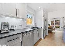 Top five (5) features of this home. (1) Over 3,000 ft2 of living space and 108' frontage on a quiet cul-de-sac, this home welcomes you to a totally private mature lot. (2) Pride and Quality workmanship evident throughout. Enter through a new modern door into an open concept modern kitchen/dining/living area with wide plank engineered hardwood, quartz countertops, elevated ceiling and gas fireplace (2021). (3) Great-sized 3+2 bedrooms complete with a Gorgeous primary complete w/5 pc ensuite including soaker tub and heated floors. (4). Completely finished lower level with lots of room (1,308 ft2) to make your own complemented by 2 simple and and beautiful bedrooms with 3-pc WR w/heated floors. (5) Professionally landscaped backyard (July 2024) with new topsoil, grading, drainage, and lush sod for a vibrant, low-maintenance lawn. Elegant flagstone pathway along the home and custom fence with natural stone steps (Grand River Stone) offering direct access to the pedestrian bridge and downtown. Refinished custom wood shed with new footings, roof, and stain. Spacious wood deck, beautifully sanded and re-stained in 2023, perfect for outdoor entertaining and relaxation..Decadent. Charming. Home. Don't miss it.