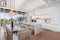 Introducing The Terrace Penthouse the premier residence at The Elora Mill Residences, offering an unmatched blend of indoor elegance and outdoor Luxury. This one-of-a-kind home features an expansive 2,400 sq.ft. wraparound terrace, complete with open-air and covered spaces, anchored by a striking double-sided stone fireplace perfect for year-round entertaining and relaxation. Inside, you will find 2289 sq.ft of living space and over $400,000 in premium upgrades which elevate every detail. Soaring 10-ft custom ceilings, softly curved architectural walls, and a dramatic two-sided fireplace set a sophisticated tone throughout the open-concept living space. Designed with the entertainer in mind, this home includes a wet bar, butlers pantry, and a chefs kitchen equipped with top-tier Miele appliances, extra-tall custom cabinetry, and an oversized island with bar seating. The open dining space is perfect for both casual dining or entertaining. The layout offers exceptional flexibility, with a spacious bonus room ideal for a home office, formal dining room or additional bedroom. The primary bedroom suite is thoughtfully positioned for privacy, featuring a walk-in closet and spa-inspired ensuite with a soaker tub, oversized glass shower, dual vanities, and private water closet. A second bedroom is located in its own wing with its own ensuite and sitting area providing comfort for guests or family members. Additional highlights include a grand entry with 2 closets, powder room, full laundry room, two parking spaces, and storage locker. Residents of The Elora Mill Residences enjoy resort-style amenities, including concierge service, a lobby coffee bar, gym and yoga studio, furnished terrace with river views, and an outdoor pool with spectacular views of the river. Located just steps from Elora's top restaurants, cafés, galleries, and shops this penthouse offers an unparalleled lifestyle in one of Ontario's most charming communities. (id:27)
