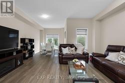 This beautifully finished 3-storey townhome features a timeless brick and stone exterior, 9-foot ceilings, and nearly 2,000 sq ft of thoughtfully designed living space. The eat-in kitchen boasts stunning quartz countertops, large island with breakfast bar, a stylish backsplash, upgraded cabinetry, pantry and a walkout to deck with fully fenced backyard. A spacious dining and living area complete the main floor, all enhanced by luxury vinyl plank flooring and custom zebra blinds, which both continue throughout the top two levels. Upstairs, the primary bedroom offers a walk-in closet and a private ensuite, accompanied by two additional bedrooms and a second full bathroom with quartz counter and upgraded light fixtures. Laundry is also on the third floor adding extra convenience. The fully finished basement adds even more versatility with a fourth bedroom, 2-piece bath, and extra living space ideal for guests, a home office, or recreation. Located steps from a school bus stop, and close to parks, top-rated schools, and major commuter routes, this home blends convenience with comfort. Move-in ready! (id:27)