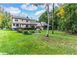 THE PROPERTY THAT TURNS “WHAT IF” INTO “THIS IS IT!” This is the listing that makes every other tab on your browser look boring. Settled on 2 private acres wrapped in mature trees, this home finally gives everyone breathing room, with a walkout basement offering real in-law potential and a loft teens will claim long before they have earned the rent they think they are paying. The brick exterior, dormer windows, long driveway, and landscaping set the tone, leading to a layout filled with warmth and personality. The kitchen could live on Pinterest with wood and white cabinets, a subway tile backsplash, high end appliances including a side-by-side fridge and freezer, and more cabinetry than you will ever run out of, which means your next Homesense run will be less about storage solutions and more about how you want to style your new favourite space. The living room brings charm with French doors and a fireplace, while the family room adds character through exposed beams, another fireplace, and a walkout to a fenced yard with a flagstone patio overlooking the pond and trees. A sunroom wraps you in peaceful views and the main-floor office gives you the quiet zone everyone needs. The second level unfolds into a sitting area that feels made for slow mornings or late-night talks, leading to a primary retreat with an ensuite and additional bedrooms that offer comfortable places to recharge at the end of the day. The walkout basement opens up endless flexibility with a kitchen, rec room, bedroom, den, gym, and bathroom that make multi-gen living feel simple. The loft above the garage elevates the setup with vaulted ceilings, skylights, exposed beams, a private deck, and its own staircase to the yard, ideal for a creative zone, or that friend who always stays longer than planned. Geothermal heating, a triple-wide driveway, an insulated 2 car garage, central vac, and a water softener complete a property that delivers the kind of life people mean when they say they want “more.”