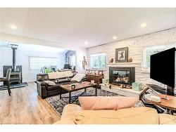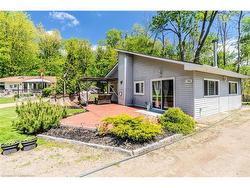 Welcome to the serene setting at Fernbrook Resort, a 50+ lifestyle cottage atmosphere w/clubhouse amenities including an indoor & outdoor pool. This open concept 1-bedroom home sits on a premium pie-shaped lot faces a pond and backs on to a forest!! Home has been recently renovated (2020) from top to bottom, has a beautiful beach vibe, a must see!! Vinyl plank flooring throughout, Caesarstone countertops, top of line appliances. The kitchen is open to the dining room and family room - great for entertaining. The family room boast a beautiful gas(propane) fireplace, the dining room also has a wood-burning stove. 3-piece bathroom, laundry room. Sunny large front deck for enjoying your morning coffee. There are 2 sheds, one on the side of the property and one in the rear for storage. The clubhouse includes tennis courts, indoor pool, gym, outdoor pool, hot tub and suntan deck. Centrally located for quick access to QEW and 401, Waterdown, Hamilton, Guelph, Cambridge. Units cannot be financed or used as collateral for a loan. Lot fees are approx. $801/Month to be verified with park management which includes lot, taxes, water, water testing, and use of the resort amenities. Hydro, propane extra. Buyer must be approved by the Park.