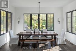 Nestled on a generous 5.289 acres of land with C7-99 zoning, this custom-built home offers all the wonderful touches you have been dreaming of. The large foyer greets you as you enter the home and your eyes will be immediately drawn to the impressive indoor/outdoor space complete with garage doors that seamlessly connect you to your backyard oasis. Cool off in the inground saltwater pool, which is also heated for those cooler days. The outdoor space is enhanced with concrete pathways and custom landscaping. Inside, the home boasts three lovely bedrooms, thoughtfully separated by the main foyer with tall pocket doors. The master bedroom sliding glass doors allow you to gaze into your backyard. An ensuite bathroom accompanies the master suite, while two additional bathrooms serve the main floor. The home is designed with large ceiling heights throughout, including in the spacious basement, adding to the open and airy feel. The custom kitchen is a dream come true. You will love the oversized island and a large pantry equipped with electrical outlets, keeping your counters clear of clutter. The open-concept design of the dining room, kitchen, and living room creates a grand yet cozy ambiance. The basement is a generous size and has been finished with a gorgeous stamped concrete pattern. Enjoy the benefits of a high-exposure location for your business. The workshop on the property offers over 2,000 sq feet of space and is equipped with hydro and the potential to add a bathroom. The workshop has an office and as an extra bonus, the shop floor is heated. The tall ceilings and three garage doors allow for commercial vehicles to be parked inside. This is truly a must-see property that offers the perfect blend of luxury living and business potential. Please note the current business is not for sale. Don't miss the opportunity to make 2439 Garrison Road your new address! (id:27)