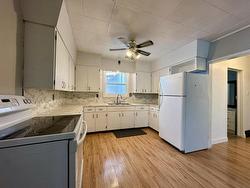 Charming 3-bedroom, 2-bath home with main-floor bedroom and 2 upstairs. Enjoy a spacious eat-in kitchen with built in shelving, a large rec room and handy bonus space off the rear entry. The fenced yard completes this functional and inviting property.