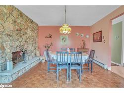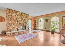 Location, location! This sprawling all-brick bungalow backs directly onto a golf course and is just steps from the beach -the perfect blend of relaxation and recreation. Nestled on a beautifully treed 75 x 150 ft lot, this solid home features 3+1 bedrooms, 3 baths, and a finished basement, offering plenty of space for family and guests. The living room/dining room impresses with cathedral windows and a natural stone two-sided fireplace, creating a stunning focal point and inviting atmosphere perfect for enjoyingcozy evenings or entertaining and dining. The spacious primary suite on the main level includes a private ensuite bath. Finished basement provides additional bedroom, bathroom and large rec room/family room and plenty of storage. Enjoy quiet mornings or lively backyard BBQs surrounded by nature. A large private driveway with no sidewalk provides ample parking. Just minutes to Cooks Bay, two marinas, golfing, the outlet mall, and Hwy 400, and only 40mins to GTA. This home combines convenience with tranquility. Recent updates include electrical panel, roof shingles, front entry door, oversized garage doors, some basement windows, and a new garden shed. Don't miss out on this wonderful opportunity. Whether you're seeking a year-round familyhome or a peaceful weekend retreat, this beautiful Gilford bungalow is ready for your personal touch.