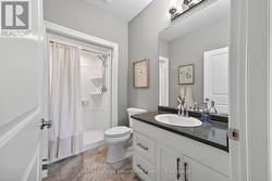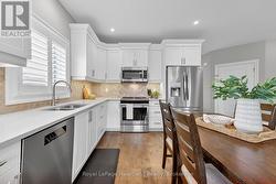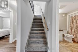 Discover the perfect balance of comfort and convenience in the prestigious Dunlop Terrace community. This impeccably maintained bungalow townhouse, built in 2018, offers a sophisticated living experience designed for those looking to simplify their lifestyle without compromising on quality or privacy. As a desirable end unit, this home benefits from additional natural light and the unique advantage of having no neighbour on one side, providing an extra layer of quiet and seclusion.The main floor features a bright, open-concept layout that seamlessly connects the living and dining areas, creating an inviting atmosphere for both daily relaxation and hosting guests. The primary bedroom is thoughtfully designed with a walk-in closet and a dedicated en-suite bathroom, while the generous secondary bedroom on the main level remains versatile enough for a home office or guest room.The fully finished basement significantly expands the living space, boasting a large recreation room, an additional bedroom, a third bathroom, and ample storage solutions. Outside, the property includes a fenced-in yard, offering a secure and private outdoor space for those who have a pet. Located in a quiet and safe residential neighbourhood, this home is truly move-in ready. The condo lifestyle ensures a maintenance-free experience where snow removal and lawn care are professionally managed, allowing you more time to enjoy your surroundings and the town. With an attached one-car garage and a central location you can experience the best of Goderich, this residence offers the independence of a traditional home with the security and ease of a managed community. (id:27)