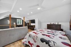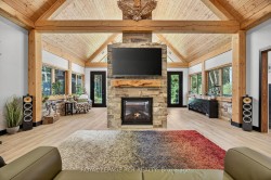 Welcome to this stunning 2022 custom-built post & beam home nestled on over an acre of privacy at the end of a quiet cul-de-sac surrounded by green space. Every inch of this home is fully customized-nothing builder grade- with design and craftsmanship that set it apart. Step inside the spectacular 24' vaulted great room where soaring beams, a floor-to-ceiling double-sided stone fireplace, and radiant heated floors set the tone for comfort and style. The chef's kitchen is a true showpiece with solid walnut accents, a Fulgor Milano 48" propane range with double ovens, built-in coffee maker, wine fridge, and oversized fridge/freezer-perfect for entertaining. The primary bedroom offers 14' ceilings, a walk-in closet with library ladder, custom storage, a spa-inspired ensuite with rain shower and body jets, and a private fireplace. With 3 bedrooms, plus a loft and the option for a separate in-law suite, this home is ideal for families or hosting guests. Smart Home technology elevates daily living with voice-activated control of lighting, blinds, fireplace, security, HVAC, and media throughout. Outside, enjoy a fenced backyard with gardens, a firepit, a Hydropool hot tub, and a full outdoor kitchen and bar-your private Muskoka resort. The property also boasts and incredible 50' x 50' detached workshop/garage, fully insulated with radiant in-floor heating, HVAC, water, washroom, compressed air lines, and oversized doors-perfect for hobbies, storage, or business needs. From spray foam insulation and 50-year shingles to custom walnut doors and chandeliers, this home blends efficiency, luxury, and craftsmanship at every turn. 10 minute drive to Gravenhurst, 18 minute drive to Bracebridge, 23 minute drive to Orillia. You will never see a house like this one with every inch of this home upgraded. Your Muskoka dream home awaits.