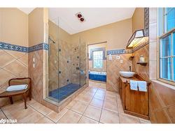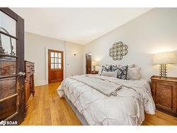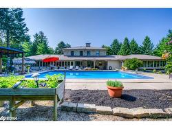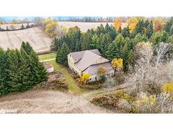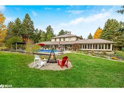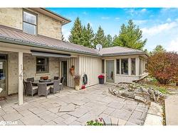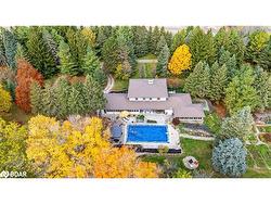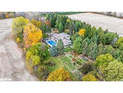 This circa 1875 fieldstone farmhouse has been thoughtfully redesigned by architect Grant A. Whatmough and is set on approximately 99 acres behind a gated entry. Maintaining classic charm and embracing modern conveniences, this property is ready for a new family to carry on tradition. The main floor welcomes you with a double-door entry leading into a spacious open-concept kitchen and large living area, highlighted by a stone fireplace and deep windowsills. The kitchen features Corian counters, stainless steel appliances, a center island, and walkout access to a covered stone patio and in-ground pool. Enjoy cozy breakfasts by the wood-burning fireplace or host larger gatherings in the formal dining room. A rare main-floor primary suite offers hardwood floors and a walkout through double French doors to a sunroom with heated floors overlooking the perennial-filled backyard and pool. The spa-style ensuite includes heated tile floors, a double glass shower, and a soaker tub. Upstairs, you will find four bright and spacious bedrooms, each with closets and windows overlooking the private property. In addition to the extra height on the second floor, the family retreat features two updated baths, upper-level laundry and generous closet space. Outdoor living here is highlighted by a 20' x 40' geothermal heated marbelite pool with diving board, flagstone patio, and a covered entertainment area for summer events by the pool. This space comes complete with a pizza oven and covered cooking area. A heritage post-and-beam barn (circa 1860) with hayloft, a secondary garage or shed & a silo enhance the property's charm. Mechanically, the home offers dual geothermal systems (for house & pool), radiant in-floor heating, two drilled wells, and an active lease on approximately 52 workable acres. Trails & a 21-acre woodlot provide endless opportunities for exploration. This one-of-a-kind rural retreat is just minutes from town amenities-ready for its next family to move in and enjoy.