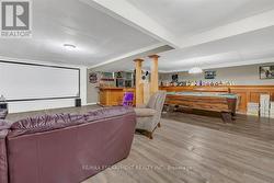 Experience executive style "Rural Seclusion" here at 920 Hwy 56 offering prime south of Binbrook location - less than 20 min commute to Hamilton/Stoney Creek Mountain amenities - situated on the southern outskirts of Empire Corners - a quaint Haldimand County Hamlet - abutting an 18 hole golf course with an upscale enclave of Estate homes nearby. Naturally hidden behind majestic pines, hardwoods, mature foliage & native grasses is an extensively renovated 1980 built bungalow positioned magically on 0.72 acre lot incs resort style back yard ftrs 28x18 on-ground swimming pool w/attractive pool shed extending to the organic Gardener's Dream back yard veggie gardens. Over 420sf of tiered decking compliments the stylish vertical vinyl sided exterior boasting premium stone accent skirting (new in 2015) elevating curb appeal to the next level. Grand front foyer introduces 1385sf of tastefully appointed living area ftrs updated modern white kitchen cabinetry, convenient peninsula, WO to side deck & 2 skylights ensuring natural brightness. Design continues to comfortable living room enjoying the ambience of cozy gas fireplace set in floor to ceiling mantel, separate formal dining room, 4pc main bath, elegant primary bedroom boasting patio door deck to pool WO, corner fireplace (AS IS), walk-in closet & 3pc en-suite - completed w/2 roomy bedrooms. Impressive family room highlights 1464sf in-law potential lower level augmented w/wainscot walls, 120 inch wall projector screen & gorgeous custom oak bar. Remaining area incs 2pc bath, multi-purpose room, utility room, cold room & versatile bedroom w/kitchenette possibilities incs on-grade WO. Extras - 16x20 shop/garage w/hydro & metal roof, 10x10 utility shed, 8x8 bunkie, roof-2006, AC-2025, n/g furnace, vinyl windows, 5000g cistern, septic, large gated driveway, flag stone fire-pit, water feature & more! Its Time To Get "Countryfied" (id:27)