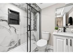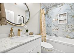 This beautifully renovated legal duplex offers exceptional value and versatility in oneof Hamilton's most desirable neighbourhoods. The main level features a spacious layout with three generous bedrooms and two full bathrooms, highlighted by modern designer finishes. The bright, fully finished legal basement suite adds further flexibility, offering two additional bedrooms, two full bathrooms, a private entrance, and dedicated in-suite laundry-ideal for extended family living or a strong rental income opportunity. Recent upgrades include an inground pool, two storage sheds, brand-new stainless steel appliances, a new furnace, and central air conditioning. Located on a quiet, family-friendly street near Kings Forest Golf Course, the home isjust minutes from Red Hill Parkway, the QEW, major shopping centres, and the GO/VIA Rail station. This property delivers a rare combination of comfort, convenience, and investment potential. A must-see!