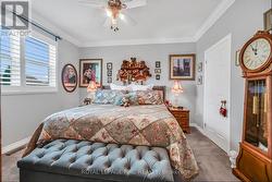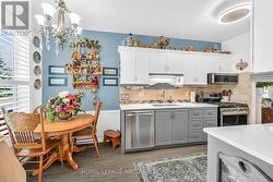 This pristine end-unit bungalow townhome with a fully finished walk-out lower level is located in the desirable Meadowlands community of Ancaster. The property offers about 2,000 sqft of meticulously finished living space across both levels. Recent upgrades total over $50,000. The main floor features 9-ft ceilings, refined crown molding, and an inviting open concept design. There are 3 bedrooms, 2 full bathrooms, and main floor laundry near the bedrooms. The modern kitchen is equipped with upgraded cabinetry, a double sink with garburator, luxury vinyl plank flooring, quartz countertops, premium stainless-steel appliances, and a comfortable breakfast nook. The spacious dining area seats six and transitions seamlessly into the living room with patio doors accessing a balcony. The primary bedroom features ensuite privileges and a walk-in closet. The professionally finished basement includes a generous family room with patio door access to a fenced rear yard featuring vibrant gardens, patio, deck and gazebo, plus there is a gas barbecue hook-up. An additional bonus room provides versatile space for a craft room, workout area, or has potential for a future 2nd kitchen. A 3rd bedroom, home office area, coffee bar, and 3-piece bathroom complete the lower level and offer excellent accommodations for guests. Additional amenities include a private driveway, an attached garage with interior access, and ample visitor parking. Extras include enhanced wood trim, hardwood flooring in the living and dining rooms and hallways, updated carpeting in bedrooms, premium California shutters, a new high-efficiency furnace and water heater, central air, and newly installed shower and bathroom fixtures. The Condo Fee covers road maintenance, lawn care, and snow removal. Situated close to highway access, a golf course, restaurants, and amenities such as Costco and the movie theatre. This home blends comfort, style, and convenience. Ideal for people seeking a low maintenance lifestyle. (id:27)