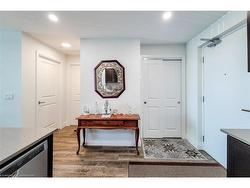 Welcome to modern, upscale living at Scenic Trails Condos, nestled in Hamilton's highly sought-after Mountview neighbourhood. This beautifully upgraded one-bedroom, one-bathroom condo offers the perfect blend of style, comfort, and convenience. Ideal for first-time buyers, downsizers, or investors, this main floor unit features a bright, open-concept layout with 9' ceilings, floor-to-ceiling south-facing windows, and custom blinds that fill the space with natural light. The kitchen is complete with stainless steel appliances, quartz countertops, perfect for cooking and entertaining. The spacious bedroom includes a walk-in closet, while the main bathroom and in-suite laundry add everyday ease. Step outside to your private open terrace with ideal for morning coffee or evening relaxation. Enjoy top-tier building amenities including a state-of-the-are gym, party room, billiards lounge with wet bar, games room, theatre room, and a beautifully landscaped courtyard with BBQs, fountain, fireplace, and lounge seating. This unit comes with an owned underground parking spot and locker. Located in a prime location close to absolutely everything!