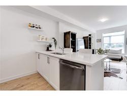 This rare freehold townhome offers nearly 1,300 sq. ft. of thoughtfully designed space in the sought-after Fifty Point / Community Beach area – just a short walk to the lake and seconds to the QEW. Tucked into a friendly neighbourhood and surrounded by parks, trails, and the harbour, it blends convenience with a relaxed, recreational vibe.Inside, you’ll find a bright, open-concept main floor with soaring 9-foot ceilings, a practical layout, and tasteful finishes perfect for both everyday living and entertaining. The kitchen features a functional sit-up island, ample cabinet space, and stainless-steel appliances, opening seamlessly to a spacious dining area and a sun-filled living room. Step through sliding doors to a private balcony with unobstructed views – ideal for morning coffee or evening BBQs.Upstairs features a spacious primary suite with a walk-in closet, a generous second bedroom, a stylish 4-piece bathroom, and laundry – all on the same floor for ease of living. The ground level includes a rare oversized walk-in storage room, plus an inside-entry single car garage with automatic door and additional driveway parking. Low monthly fees cover visitor parking, common elements, and snow removal.