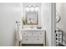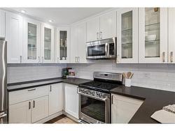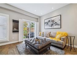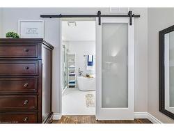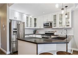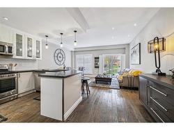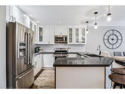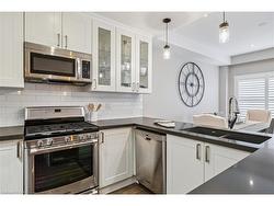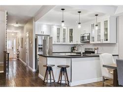 Stunning upgrades, elegant design & prime location! This beautifully updated townhome, just off HWY 403 & the Linc, blends modern style, comfort & everyday convenience. Enjoy rich 5” oak hardwood floors, upgraded lighting & LED pot lights throughout. The bright kitchen features Caesarstone counters, soft-close cabinets, stainless steel appliances, undermount sink & sleek subway tile backsplash. The open living/dining area offers great natural light & walkout to a private courtyard overlooking a landscaped parkette — a peaceful spot for morning coffee or evening relaxation. Interior garage access & stylish powder room complete the main level. Upstairs, the spacious primary suite offers 2 closets & a stunning 5-pc ensuite with soaker tub, stone accents, glass shower, frosted barn door & double vanity. The second bedroom also features a 4-pc ensuite & generous closets. The finished lower level includes a laundry room with cabinetry, sink & backsplash, plus a large rec room with media wall, stone fireplace & custom built-ins, along with an upgraded 3-pc bath. Located in a walkable, highly sought-after neighbourhood near scenic trails, the Bruce Trail, Chedoke Golf Course, Locke St., Westdale, McMaster & St. Joe’s Hospital. Minutes to shops, cafés & parks. Meticulously finished from top to bottom — a hidden gem offering the perfect blend of luxury & lifestyle!