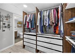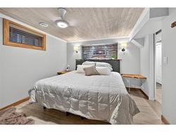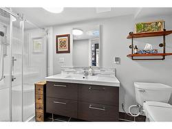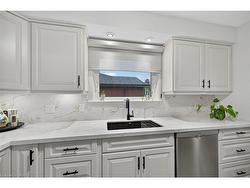 Impressive one of a kind bungalow, meticulously cared for and updated, on lovely quiet court lot. Exceptional curb appeal with aggregate concrete driveway and welcoming updated front porch. Once you step inside you won't want to leave. Formal Living/Dining room features updated bamboo flooring, peninsula gas fireplace and built-ins. Beautifully updated kitchen with quartz counter and infinity backsplash. Updated 4 piece bath and 2 bedrooms further enhance the main level. One of the bedrooms has a newer garden door leading to expansive, covered trex deck and patio.The backyard has been transformed into a beautiful private oasis, lovingly landscaped and fully fenced for multi-seasonal enjoyment. Recent shed includes Napolean BBQ installed on pull-out shelf and lots of storage. The lower level is a wonderful retreat. Cozy recroom with electric fireplace and bonus primary bedroom with soaker tub and ensuite bathroom with separate shower and heated floors. Huge closet with built-ins, lower level laundry room and workshop. There are updated windows and doors, California shutters, a feature live wall and includes appliances. Situated in a fabulous neighbourhood close to shopping, dining, buses, schools, parks and easy access to downtown and highways. Move in ready with loads of parking, this one has it all !!