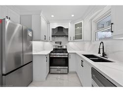 Fully Renovated, Two family Home, 3+2 Bedrooms, Legal Basement with Separate Entrance, Additional Dwelling Unit, All work done with City Permits & Approvals, 2 - 100 amp each Hydro Panels, ESA Approved, Double Driveway Approved with Permit, Detached Garage with Hydro, Inter Connected Carbon Monoxide & Smoke Detectors on Both Levels, New One inch water supply, All new Plumbing & Wiring in the house, New Gas Furnace, 2 Electric Fireplaces, 2 Egress Windows in the Basement, Quartz Counter Top & Back Splash in Upper Kitchen, Tankless Water Heater, All Sizes Approx., 2 Kitchens, 3 full bathrooms, Approx. 2100 Sq. Ft Living space