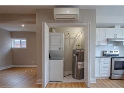 This updated 1-bedroom unit is located in the heart of downtown Hamilton, offering unparalleled convenience with close proximity to transit, shops, restaurants, and more. The unit features luxury laminate flooring throughout, providing a sleek and modern look. The kitchen boasts stone countertops and stainless steel appliances, including dishwasher, ensuring both style and functionality. The 4-piece bathroom is elegantly designed, and each unit comes with its own in-unit heating and cooling controls for personalized comfort. Additionally, the convenience of an in-unit washer and dryer makes laundry a breeze. The living area features a cozy gas fireplace, perfect for relaxing evenings. Residents can also enjoy a fantastic courtyard area, ideal for soaking up the sun on bright days or enjoying the pleasant evenings. Utilities are extra. Ask about free months rent incentive.