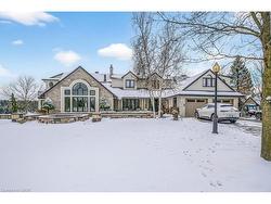 Welcome to this bright, south-facing 1+1 bedroom walkout apartment nestled in a prestigious Ancaster estate home. Recently renovated and thoughtfully furnished, this unit blends modern style with comfort. Enjoy a private entrance, exclusive driveway, and expansive windows that frame views of the professionally landscaped grounds. Inside, you’ll find a gourmet kitchen featuring a quartz waterfall island, full-size stainless steel appliances including a gas range, soft-close cabinetry, and stylish finishes throughout. The open-concept living space is anchored by a gas fireplace with custom built-ins, flowing seamlessly into the dining area and out to a walkout patio. The spacious bathroom includes a double vanity and a glass-enclosed rain-head shower. A bonus den offers the perfect work-from-home setup. Private in-suite laundry, high ceilings, pot lights, and wide plank flooring add to the upscale feel. Located minutes from Hwy 403, Hamilton Airport, and Brantford, this serene rural setting offers convenience without compromise. Utilities + Internet INCLUDED. Just move in and enjoy!P roof of income, credit, and reference required. AAA tenants only apply.