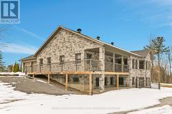 Custom brick bungalow built in 2016 situated on over 31 acres, with a double car attached garage. Open concept living, kitchen, with island, dining room and living room with propane fireplace. Main floor also includes 2 bedrooms, primary bedroom includes a 3 piece en suite, a sperate office, 4 piece bathroom and large laundry room. Partially finished lower level has a rec room, 3 piece bath and walk out entrance. There are plenty of windows throughout, a wrap around deck and a fully insulated separate shop. Maintenance free home, just move in and enjoy. Please allow 24 hours irrevocable on all offers. (id:27)