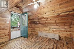 Welcome to the ultimate year-round cottage-full of charm, character, and warmth inside and out. Nestled among mature trees on a quiet dead-end street, this inviting A-frame retreat blends rustic charm with modern comfort. The striking exterior features a wood exterior, while a covered front porch invites you to slow down and enjoy peaceful mornings surrounded by nature. Step inside to discover beautiful woodwork, fresh paint, and a brand-new custom kitchen complete with a stylish backsplash. The main floor offers a four-piece bath, cozy family room with wood stove and a comfortable bedroom. Upstairs, you'll find a loft and a bedroom with balcony, ideal for guests or family. This home has seen numerous quality updates, including a natural gas furnace installed in 2022, central air conditioning new in 2025, a spray-foam insulated heated crawl space with industrial dehumidifier completed in 2022, new eavestroughs and downspouts in 2024, updated laminate flooring in 2025, and a new septic system in 2023. Relax year-round in the all-season Muskoka-style room with a propane stove (not in service) and exposed log beams, offering that perfect rustic touch. Outside, enjoy the spacious 50' x 150' lot, garden shed, and unfinished bunkie ready for your personal touch. Located approximately 170 meters from the sought-after Boiler Beach, you'll love endless summer days on the sand and cozy evenings around the backyard campfire. All this, just a short drive or bike ride to Kincardine's shops, restaurants, and amenities. A perfect blend of cottage charm and modern updates - your peaceful getaway awaits. (id:27)