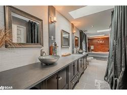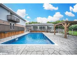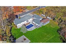 MULTI-GENERATIONAL ESTATE ON 1.3 ACRES WITH OVER 8,400 SQ FT, SEPARATE LIVING QUARTERS & RESORT-STYLE AMENITIES! This exceptional property, located just outside the charming community of Stroud, offers serene country living and city convenience. This property features over 8,400 sq. ft. of finished living space, including a fully finished main house, a pool house, and separate studio space, each complete with its own kitchen. The main house features a warm and elegant interior with 5 bedrooms, 4 bathrooms, updated flooring, and a desirable layout with multiple walkouts, perfect for entertaining. The kitchen boasts butcher block counters, white cabinets, and stainless steel appliances. The second floor primary suite impresses with a private entertainment area, sitting area with a fireplace, private balcony, office area, and ensuite with walk-in closet and in-suite laundry. The lower level is highlighted by a traditional wooden wet bar and spacious recreation room. Ideal for extended family, the pool house features exotic tigerwood flooring, skylights, a wall of windows overlooking the pool, a spacious living room with vaulted ceilings and a wet bar, a full kitchen, 2 bedrooms, and 2 bathrooms. The pool house also has a 690 sq. ft. basement with plenty of storage and its own gas HVAC and HWT. The bonus studio space welcomes your creativity and offers an open-concept design. Enjoy an in-ground pool, expansive stamped concrete patio, multiple decks, and plenty of green space for family events and activities. Additional amenities include a paved area for a basketball court and an ice rink, exterior lighting, a sprinkler system, and 2 storage sheds. The property has 800 Amp service and a side gate offering access to drive to the backyard, which is the perfect spot to park the boats or toys. This multi-residential #HomeToStay is perfect for those seeking privacy and endless entertainment possibilities.