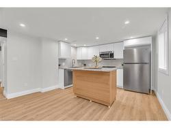Welcome to this immaculately renovated and spacious 2 bedroom + den, 1 bath lower unit, thoughtfully designed, boasting over 1,100sqft, with a functional layout and beautiful, warm finishes. The open concept kitchen and living space features stainless steel appliances, sleek cabinetry, and 3 large windows that make this basement unit feel bright and airy, filling the home with natural light and looking out onto the backyard space. A spacious den offers versatility for those looking for some work at home space, a yoga area, or kids zone. Enjoy the convenience of an in-suite laundry room. This unit boasts lots of storage, between a large walk-in closet in the primary bedroom, under the stairs storage, and more storage in the laundry room. Two spacious bedrooms and one full bathroom with thoughtful updates, including heat pumps which are energy efficient cooling and heating sources allowing for personalized heating throughout the home. The shared backyard provides extra outdoor space to relax or unwind. Located minutes from Highway 8, a short walk to Ash Park, and close to downtown Kitchener, you have everything you need close by. Come see for yourself why this unit could be your new home!