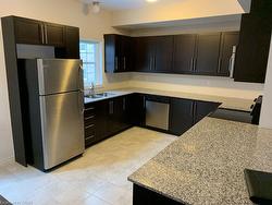 Modern 3-Storey Townhouse Near Downtown Kitchener. Stylish and spacious 3-bedroom, 2.5-bathroom townhouse with an attached garage, ideally located within walking distance to Downtown Kitchener, the GO Station, and Grand River Hospital. This bright, open-concept home features high-end finishes throughout, including hardwood floors in the main living areas, carpeted bedrooms and stairs, and ceramic tile in bathrooms. The gorgeous kitchen offers ample counter space, granite countertops, stainless steel appliances, and walkout access to a private patio—perfect for relaxing or entertaining (BBQ permitted). Upstairs, the third floor boasts a primary bedroom with his-and-hers closets and a 3-piece ensuite, plus two additional bedrooms, a 4-piece main bath, and in-suite stacked washer and dryer for added convenience. Additional features include air conditioning and professional painting and cleaning prior to move-in, ensuring the home is in pristine condition. Tenants enjoy the excellent downtown Kitchener location: on bus route, 10 min walk to LRT, 5 min drive or 15-20min walk to downtown Kitchener amenities such as great restaurants and entertainment, KitchenerMarket; 3min drive or 15min walk to GO station; 10min drive to UW or WLU ;close to HWY 7 access. ** This conveniently located townhouse will be professionally painted, cleaned and move-in ready as early as mid January 2026 or February 1st, 2026***