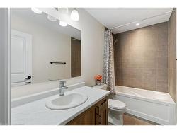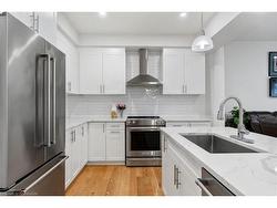 Welcome to this stunning 2-storey home in the prestigious Doon South neighbourhood. Offering over 2,300 sq.ft. of beautifully finished living space that blends custom craftsmanship with modern elegance. From the moment you enter, you're greeted by oversized marble-look tiles and a bright, spacious layout featuring engineered hardwood floors, soaring 9’ ceilings, and an open-concept design perfect for family living and entertaining. The chef’s kitchen boasts full-height custom cabinetry, quartz countertops, a walk-in pantry, timeless subway tile backsplash, and a full 2020 stainless steel KitchenAid appliance package. Oversized 8’ patio doors lead to a fully sodded and fenced backyard with space for a future deck, garden, or play area. Upstairs, enjoy the convenience of second-floor laundry and three sun-filled bedrooms with blackout window coverings, including a luxurious primary suite with a spa-inspired ensuite featuring a glass walk-in shower and rainfall head. The unfinished basement with a 2-piece washroom rough-in offers excellent potential for future development. Additional features include central A/C, water softener, humidifier, and a stamped concrete/paver stone 3-car driveway. Ideally located just minutes from Hwy 401, this quality Ridgeview home is a rare opportunity where luxury, comfort, and location come together seamlessly.