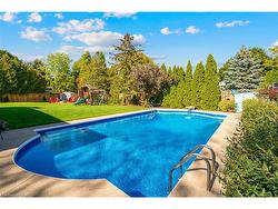 Nestled on a quiet cul-de-sac in the Village of Jordan, this family-friendly 3+2 bedroom, 3.5 bathroom home sits on a big pie-shaped lot, offering the perfect balance of space, comfort, and function. With a total of 3,000 square feet of finished living space, it’s ideal for those who value both practicality and lifestyle.The main floor features a bright, flowing layout highlighted by a great room with vaulted ceilings that seamlessly combines the living and dining areas, creating an inviting hub for everyone to hang out in. The refreshed kitchen includes painted cabinetry, quartz countertops, a tiled backsplash, and stainless-steel appliances, blending style and usability. Adjacent is a cozy family room with a gas fireplace while a home office, 2 piece bath, and laundry room with access to the double car garage complete the main level. Upstairs, you’ll find three bedrooms with new vinyl plank flooring just installed throughout. The primary bedroom features a 5 piece ensuite with a double-sink vanity, separate glass-enclosed shower, and freestanding soaker tub. The main 4 piece bath has been beautifully renovated. Downstairs, the finished lower level adds versatility with two additional bedrooms, a full bath and a spacious recreation area with a wood-burning fireplace - a perfect retreat for guests, teens, or extended family.Step outside from either of two sets of sliding patio doors to your private backyard retreat featuring a heated inground pool, hot tub, and lounging and firepit areas - all surrounded by mature trees and generous lawn space for kids to run and play!Located in one of the Town of Lincoln’s most desirable neighbourhoods that backs onto the Bruce Trail, you’ll enjoy being close to Jordan's charming shops, wineries, restaurants, and the beloved Ball’s Falls Conservation Area - all while just a 10 minute drive to the city. A picture-perfect place to raise your family - you’ll love it here!