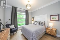 2250 sq. ft. of bespoke design wrapped in natural stone, warm woods, and thoughtful contemporary detailing. From the moment you step inside, the single-storey layout unfolds with clean lines, layered textures, and intentional flow. The great room is anchored by a 15-ft vaulted ceiling and a striking porcelain media wall with an integrated linear fireplace. Quarter-sawn hardwood runs throughout the main living spaces, grounding the palette in warmth and texture. In the kitchen, ceiling-height cabinetry blends soft grey flat panels with the combed grain of Rift-sawn White Oak. Quartz surfaces, integrated appliances, a sculptural 6-seat curved island, and hidden pantry access all contribute to a space that's both functional and refined. The adjacent dining area leads to a Muskoka room that invites relaxed indoor-outdoor living. The primary suite features oversized six-pane windows that draw in natural light. A spa-style 5-piece ensuite enjoys double sinks, triple vanities, heated floors & a deep soaker tub wrapped in textured porcelain that continues across the wall to envelope the curb-less, seated, glass shower. Two additional bedrooms include generous closets and share a beautifully finished main bath. The powder room introduces a tactile design moment with its organic cork wall treatment. A custom switchback staircase wood-framed and glass-paneled leads to the finished lower level where lookout windows bring in plenty of natural light. 1,656 sq. ft. of additional living space includes a central games room, inviting family room, office with private outdoor entry (ideal for a home business), guest bedroom, gym/flex space, and a 2-piece bath pre-framed and plumbed for shower option. Outside, the backyard is framed by mature trees and offers multiple areas for dining, lounging, and quiet retreat created through designer hardscaping. Set in the Meadowlands of Sunningdale, close to golf, forested trails, shopping, Western University, and University Hospital. (id:27)
