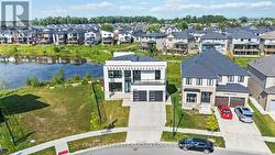 Welcome to 1429 Medway Park Drive a rare opportunity to own a custom-built luxury residence in the highly sought-after Creekview community of Northwest London. Situated on a premium pie-shaped walkout lot, this home offers unobstructed pond and serene ravine views, with no neighbouring house on one side, providing both privacy and scenic beauty. This designer home boasts approximately 3,800 sq ft of exquisite living space, finished with many upgrades that blend elegance and functionality. As you enter the grand 18-foot foyer, you are greeted by refined details like smart blinds throughout, LED stair lighting, and a statement 80-inch Dimplex steam fireplace in the open-concept living room. The heart of the home is the gourmet kitchen, featuring ceiling-height modern cabinetry, granite countertops, under-cabinet lighting, a stylish backsplash, and an oversized pantry all opening onto a spacious living area with rich engineered hardwood floors and floor-to-ceiling windows overlooking the picturesque pond. From here, step out onto the wraparound deck with glass railings a perfect outdoor sanctuary for morning coffee or sunset entertaining. Upstairs, you will find four spacious bedrooms, including a luxurious primary retreat with breathtaking pond views, custom built-ins in the walk-in closet, and a spa-inspired ensuite with in-floor heating, a double vanity, tiled shower, and soaking tub. A junior suite with private ensuite, additional full bath, and a sunny home office/lounge with balcony access complete the upper level.The fully finished walkout basement extends the homes versatility, offering a fifth bedroom, large recreation space, cold bar, full bath, oversized cold room, and private access for potential in-law or income suite flexibility. This home is ideally located close to Western University, University Hospital, shopping, and top-rated schools, making it the perfect blend of luxury, lifestyle, and location. (id:27)