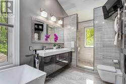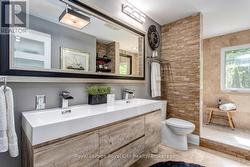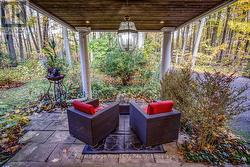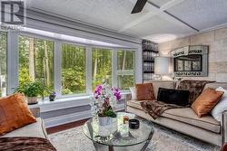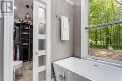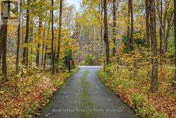 Tucked away behind a controlled, gated entrance, a long, winding & naturalized paved driveway, leads you to this exceptional residence completely hidden from the road! The journey itself is an introduction to the tranquility that awaits. This is truly an exceptional retreat, where privacy and nature converge. A portico graces the front of the home, complementing the beautifully manicured front landscaping, a nature's paradise where deer, birds & local wildlife roam freely. Step inside and immediately experience the seamless connection to the outdoors; every window offers a captivating view, creating the sensation of being surrounded by nature. This masterfully renovated home boasts an open-concept design, allowing an unobstructed sightline from the front door straight through to the private backyard oasis. All four levels have been meticulously upgraded with exquisite attention to detail, featuring solid wood trim, baseboards & most doors throughout. Cozy evenings await with fireplaces in the living room & formal dining room, AND a luxurious two-way fireplace gracing the primary bedroom suite. Currently configured as a two bedroom, with spa-like bathrooms, this home effortlessly offers the potential to convert back to a three bedroom family residence. The heart of the home, a recently updated AYA kitchen, is a culinary dream! It showcases gleaming Quartz countertops, built-in appliances, abundant cabinetry, a convenient built-in breakfast bar & a large center island with ample seating. The cozy formal dining room on the ground floor provides a walk-out to the breathtaking backyard. Outside, the property is a private haven designed for relaxation & enjoyment. Delight in multiple landscaped seating areas, a charming firepit for cozy gatherings & perennial gardens that require minimal maintenance, leaving very little grass to care for. This is more than a home; it's a lifestyle a rare blend of refined living and natural serenity. (id:27)