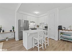 Move-in ready, beautifully finished, and built in 2024, this is the kind of home buyers dream about! Welcome to this end-unit freehold townhome in Milton, offering 3 bedrooms, 3 bathrooms, and a thoughtful contemporary layout across three levels with 2 parking spots. The main floor impresses with high 9-foot ceilings and an open-concept design featuring luxury vinyl flooring throughout. The kitchen boasts granite countertops, stainless steel appliances, including a gas stove, a centre island with seating, a pantry, and an adjacent dining area perfect for gatherings. The bright living room opens to a covered balcony with a built-in gas line for convenient BBQs. For added convenience, enjoy the separate den, ideal for an office, and it is perfect for work or study. The main floor is complemented by a convenient 2-pc bathroom. Upstairs, the third floor offers three well-sized bedrooms. The primary bedroom offers a walk-in closet and a 3-pc ensuite, while the other two bedrooms each feature double closets, with the third bedroom enhanced by a charming Juliette balcony. This level also includes a 4-pc bathroom, an ensuite laundry, and a linen closet for added convenience. The ground floor features high 9-foot ceilings, direct access to the garage equipped with an accessibility point for an optional EV charger, a spacious storage room, a double closet, tile flooring, and a baseboard heater at the entrance for added comfort. Situated in a growing Milton community, you are just minutes from parks, schools, shopping, restaurants, transit, and all your everyday essentials, making this home as practical as it is inviting.