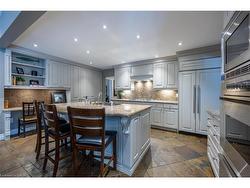 Nestled at the end of a highly sought-after court in prestigious Lorne Park, this elegant two-storey, five-bedroom residence blends timeless design with exceptional indoor and outdoor living. Ideally located within a five-minute walk of the highly rated Lorne Park High School and Lorne Park Elementary School, as well as a short walk to shopping and the local library. Upon entering, the spacious foyer leads to a dining room with a fireplace and a bright, modern kitchen featuring stainless steel appliances, an integrated refrigerator, a large island with breakfast bar, pantry, and a spacious dining area with garden doors opening to a large stone patio. Step down to the TV room, highlighted by a vaulted ceiling, cove lighting, and a two-sided gas fireplace shared with the kitchen dining area. A main-floor office with wrap-around windows and a private side entrance is complemented by an adjoining living room with a fireplace. Slate flooring extends through the foyer, kitchen, breakfast room, family room, and powder room, while hardwood floors enhance the remaining main level, adding warmth and sophistication. Upstairs, discover five generous bedrooms, including a primary suite with a luxurious five-piece ensuite and a large walk-in closet with a window, along with a four-piece main bath featuring a large glass shower. The finished basement, with cozy carpeting, provides abundant additional living space featuring a billiards room, family room, bonus room, three-piece bathroom, a large storage area, and a workshop. Enjoy outdoor living with a stone patio, lower entertaining terrace, sparkling pool and hot tub, pool house, garden shed, and a sprawling tree-lined backyard offering the utmost privacy. This is the perfect home and location for a young family—a rare opportunity on one of Lorne Park’s most coveted courts, combining sophistication, comfort, and everyday convenience. Make this beautiful Lorne Park home your family’s next chapter. Book your showing today.